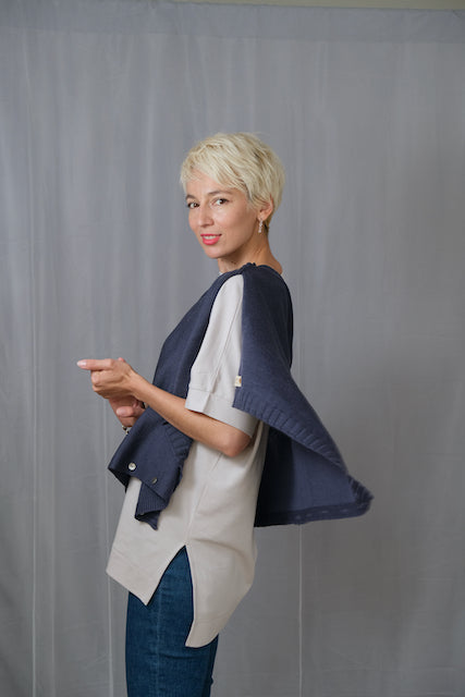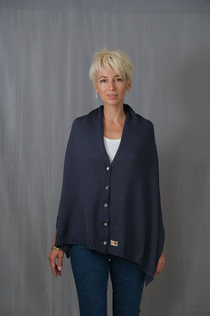 The Pelerine is made in Italy from 100% sheep wool with mother of pearl buttons and is available in different colours.